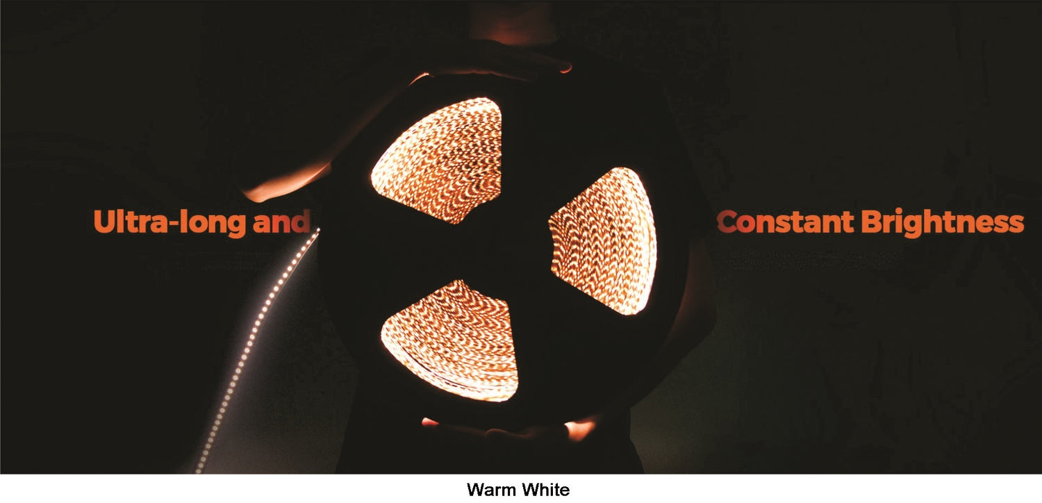 An Ultra Long LED Strip at 30M Long with No Brightness Dim At The End, Constant Brightness; High Quality PCB and LED Chips, With 3M Tape. Suitable for Crown Molding, Hall Way, Stairs, and Anywhere needs A Long Stretch.